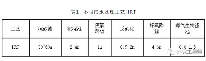 HRT即平均水力停留時間,指待處理污水在反應器內的平均停留時間,也就是污水與生物反應器內微生物作用的平均反應時間,為反應器有效容積與進水量的比值。對于生物處理,HRT要符合相應工藝要求,否則水力停留時間不足,生化反應不完全,處理程度較弱;水力停留時間過長則會導致系統(tǒng)污泥老化。